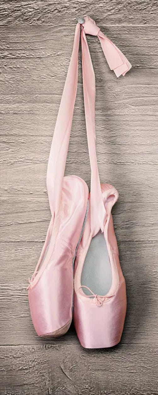 In the dressing room, I watch the older girls put on their toe shoes and wish for the day when it will be my turn. The tall girl with the bun and flowers is moving onto toe. I watch as she places the lamb’s wool carefully on her toes to protect them from the hard box. Then she slides her whole foot in and ties the pretty silk ribbons criss-cross on her legs. It is graceful-looking. My turn is coming.